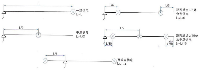 4、若滑觸線線路過長,導(dǎo)致電壓降過大時,可改變供電方式,由一端輸入電源,可改為中間輸入或兩點(diǎn)或多點(diǎn)輸入,以減少電壓降。