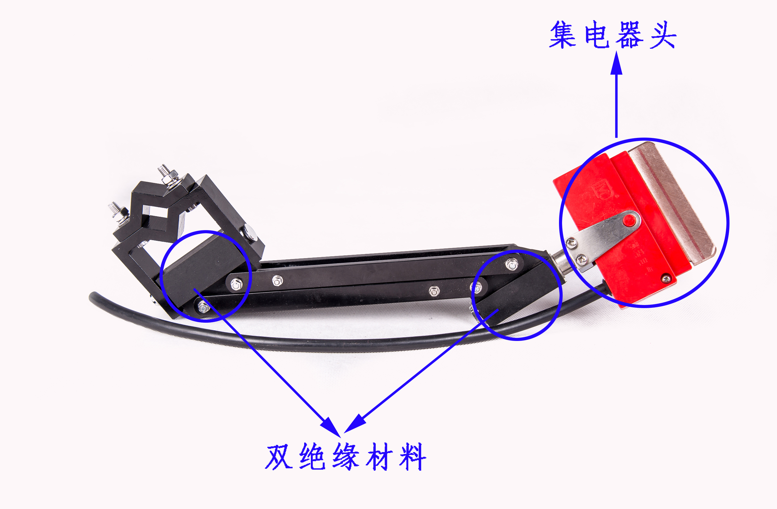 集電器采用特種工藝塑料ABS及不銹鋼金屬部件鑲嵌組裝,能同時(shí)在水平和垂直方向進(jìn)行調(diào)節(jié),左、右各擺幅均大于90度,實(shí)現(xiàn)了集電器的三維空間運(yùn)動(dòng),以保證觸靴與滑觸線在任何狀態(tài)下都能保持良好的接觸,滿足用電設(shè)備不間斷供電的工作需求。